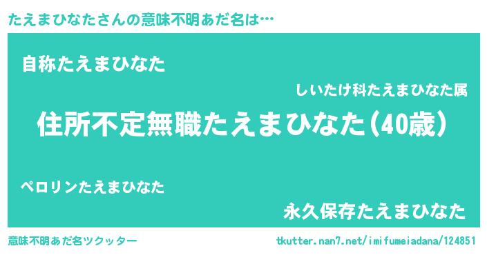 | ヘコむあだ名 | 『たえまひなた(笑)』『たえにゅー』 |