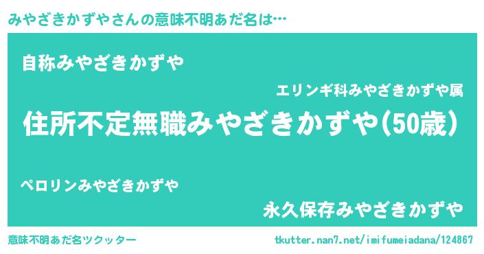 | ヘコむあだ名 | 『みやざきかずや(爆)』『みやもー』 |