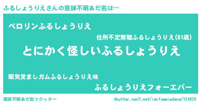 | 男性向けラノベタイトル風あだ名 | 『ふるしょうりえの嫁は女の子じゃないと思った?』 |