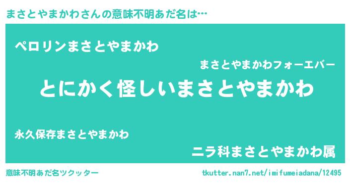 | 女子向けラノベタイトル風あだ名 | 『まさとやまかわの卵を拾いまして』 |