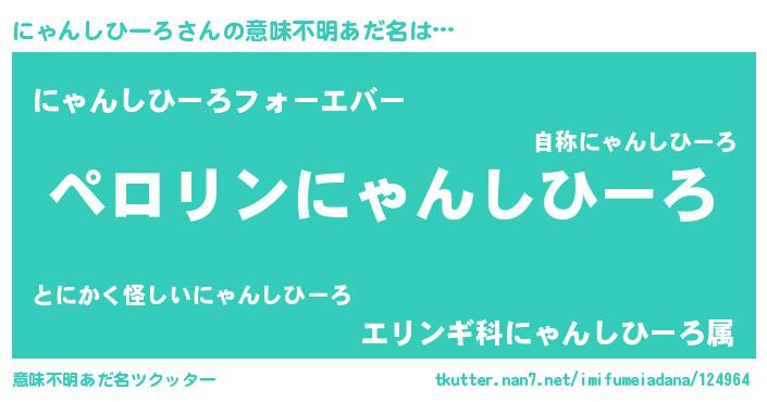 | 女子向けラノベタイトル風あだ名 | 『(仮)にゃんしひーろのやんごとなき事情』 |