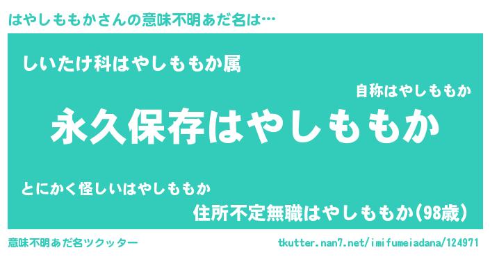 | ヘコむあだ名 | 『はやしももか(遠い目)』『はやぷりん』 |