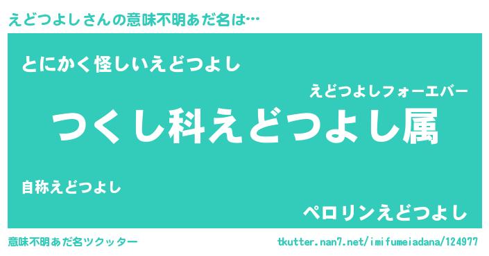 | 男性向けラノベタイトル風あだ名 | 『えどつよし~年齢イコール彼女いない歴の魔法使い~』 |