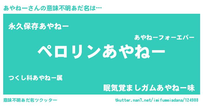 | ヒーロー風カッコイイあだ名 | 『スーパーアヤネー』『ネオアヤネー』 |