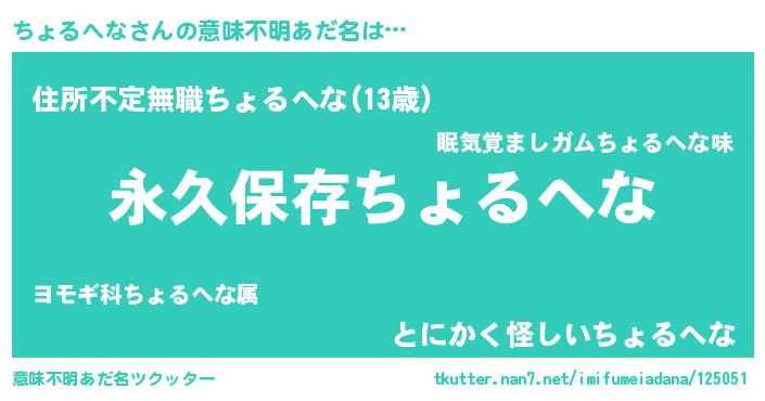 | 男性向けラノベタイトル風あだ名 | 『ちょるへなという概念が存在しない退屈な世界 』 |