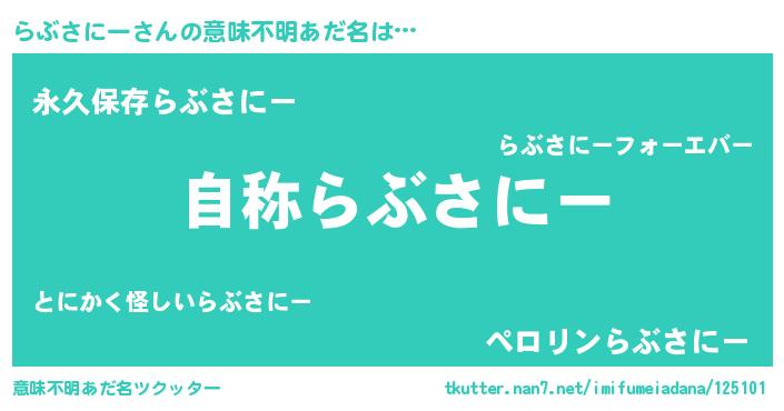 | 男性向けラノベタイトル風あだ名 | 『Re:らぶさにーから始める異世界生活』 |