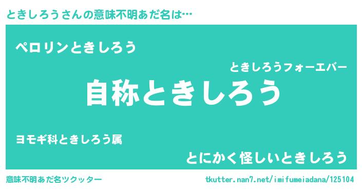 | 男性向けラノベタイトル風あだ名 | 『Re:ときしろうから始める異世界生活』 |