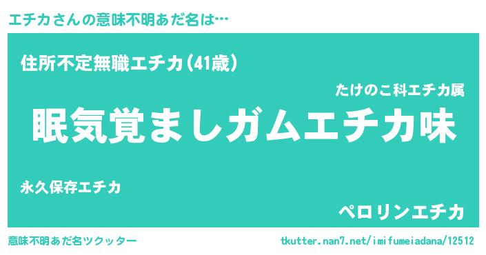 | 男性向けラノベタイトル風あだ名 | 『おまえをオタクにしてやるから、俺をエチカにしてくれ! 』 |