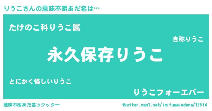 | 男性向けラノベタイトル風あだ名 | 『りうこという概念が存在しない退屈な世界 』 |