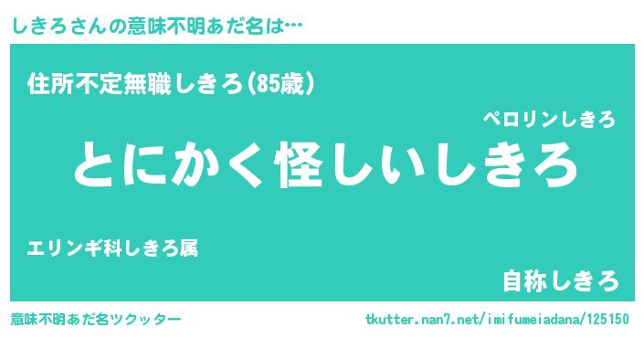 | 男性向けラノベタイトル風あだ名 | 『うちのしきろが世界を掌握している!』 |