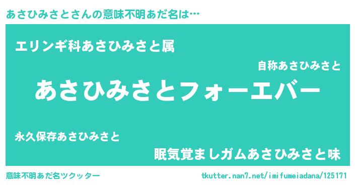 | 女子向けラノベタイトル風あだ名 | 『あさひみさとの雑貨屋さん』 |