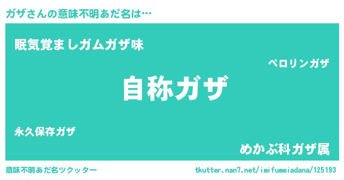 | 男性向けラノベタイトル風あだ名 | 『魔法科高校のガザ』『ガザスレイヤー』 |