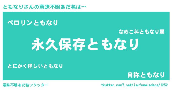 | 男性向けラノベタイトル風あだ名 | 『ともなりという概念が存在しない退屈な世界 』 |