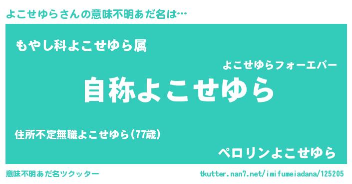 | 男性向けラノベタイトル風あだ名 | 『Re:よこせゆらから始める異世界生活』 |