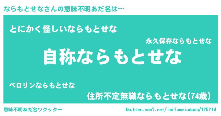 | 肩書あだ名 | 『ならもとせなディレクター』 |