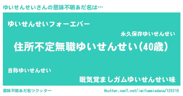 | 男性向けラノベタイトル風あだ名 | 『この素晴らしい世界にゆいせんせいを!』 |