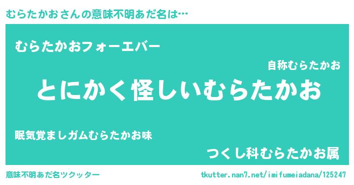| 女子向けラノベタイトル風あだ名 | 『むらたかお様がみてる』 |