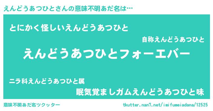 | 欧米人風あだ名 | 『えんどうあつひとクリステル』 |