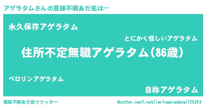 | ヘコむあだ名 | 『アゲラタム(震え声)』『アゲっ子』 |