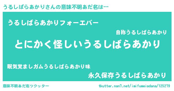 | ポケモン風あだ名 | 『ヒウルシバラアカリ』『ウルシダネ』 |