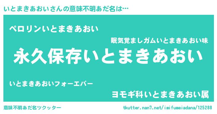 | ヘコむあだ名 | 『いとまきあおい(遠い目)』『いとっふぃ~』 |