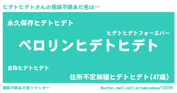 | 男性向けラノベタイトル風あだ名 | 『ヒデトヒデトの憂鬱』 |