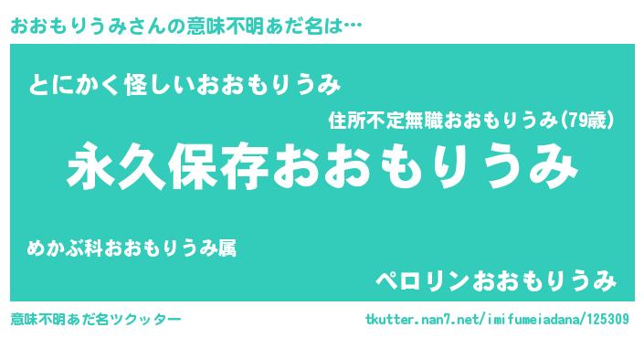 | 男性向けラノベタイトル風あだ名 | 『おおもりうみという概念が存在しない退屈な世界 』 |