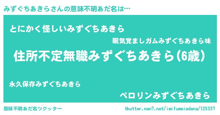 | ポケモン風あだ名 | 『ミーズイ』『ヒミズグチアキラ』 |
