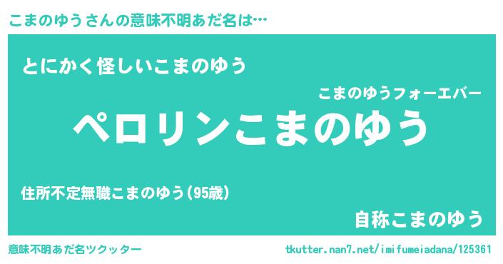| ポケモン風あだ名 | 『コマチュウ』『ヒコマノユウ』 |