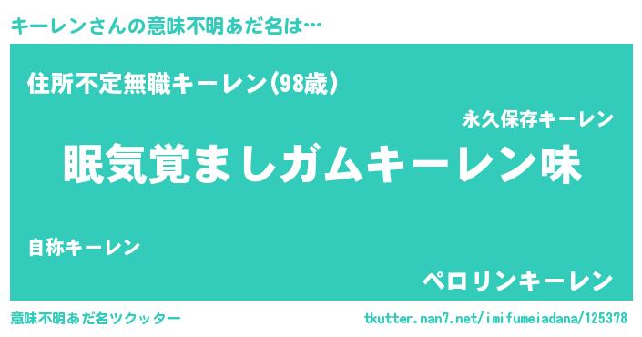 | ヘコむあだ名 | 『キーにゅー』『キーレン(遠い目)』 |
