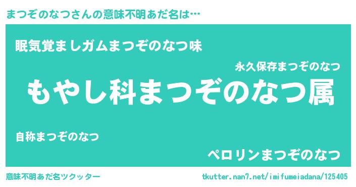 | 男性向けラノベタイトル風あだ名 | 『転生したらまつぞのなつだった件』 |