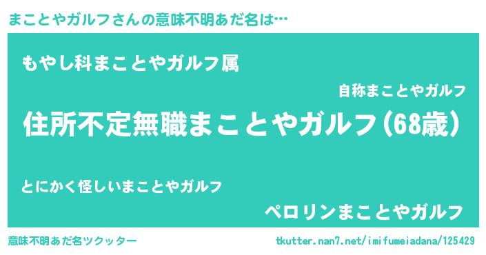 | 料理風あだ名 | 『まことやガルフのカルパッチョ風』 |