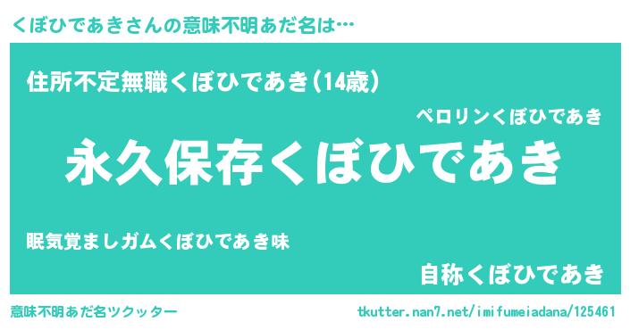 | 胡散臭い通販商品みたいなあだ名 | 『絶対に幸福をもたらす水素水…その名も「くぼひであき」』 |