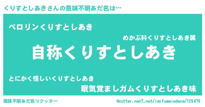 | 女子向けラノベタイトル風あだ名 | 『くりすとしあきなんてお断りですっ。』 |