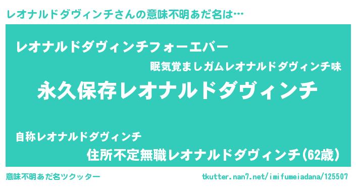 | ヘコむあだ名 | 『レオナルドダヴィンチ(震え声)』 |