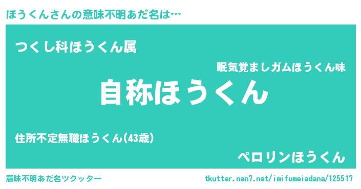 | 男性向けラノベタイトル風あだ名 | 『Re:ほうくんから始める異世界生活』 |