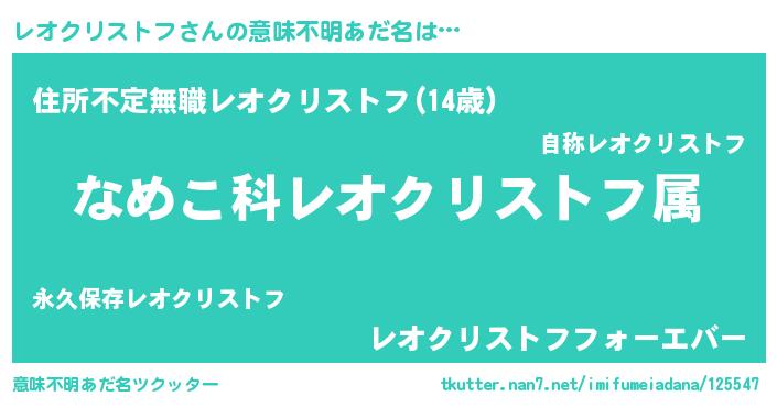 | ヘコむあだ名 | 『豆乳』『レオクリストフ(笑)』 |