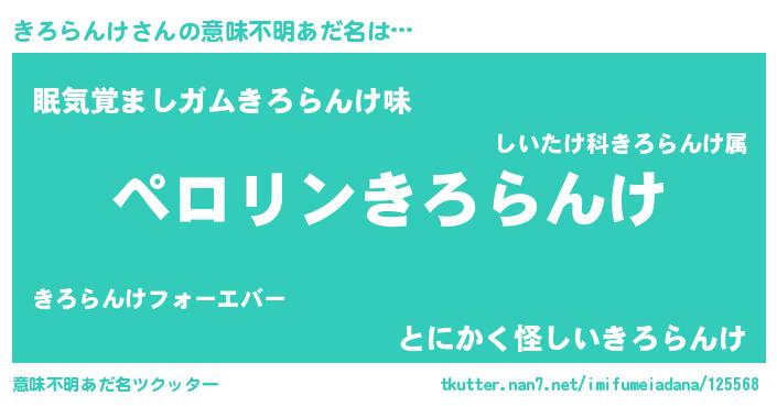 | 胡散臭い通販商品みたいなあだ名 | 『モテモテ間違いなしブレスレット…その名も「きろらんけ」』 |