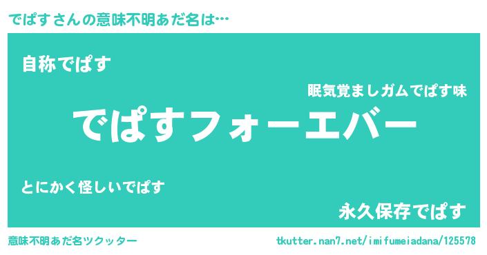 | ファンタジー風あだ名 | 『エターナルデパスー』『ゼデパトゥ』 |