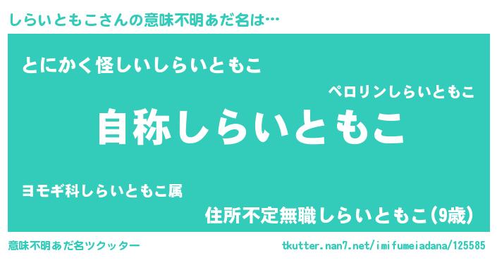 | 男性向けラノベタイトル風あだ名 | 『魔法科高校のしらいともこ』 |
