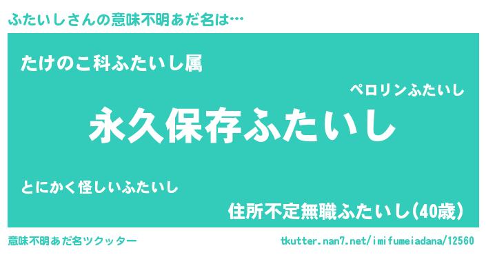 | 男性向けラノベタイトル風あだ名 | 『ふたいしという概念が存在しない退屈な世界 』 |