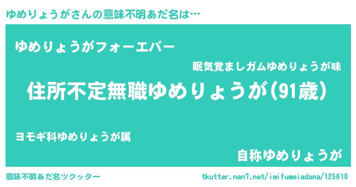 | 男性向けラノベタイトル風あだ名 | 『この素晴らしい世界にゆめりょうがを!』 |