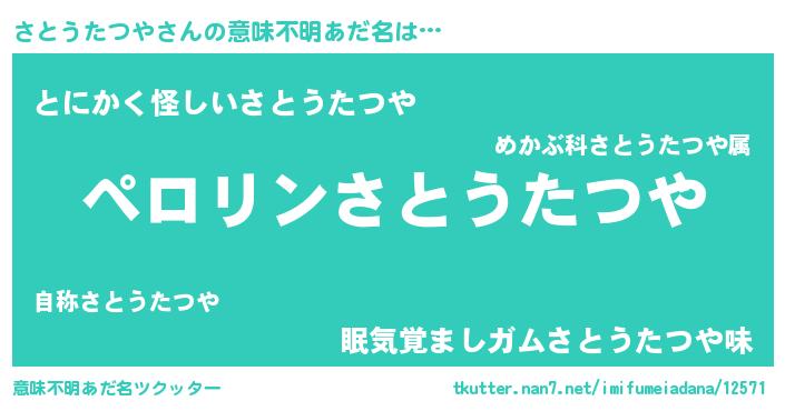 | ヒーロー風カッコイイあだ名 | 『スーパーサトウタツヤ』『幻影騎士サト』 |