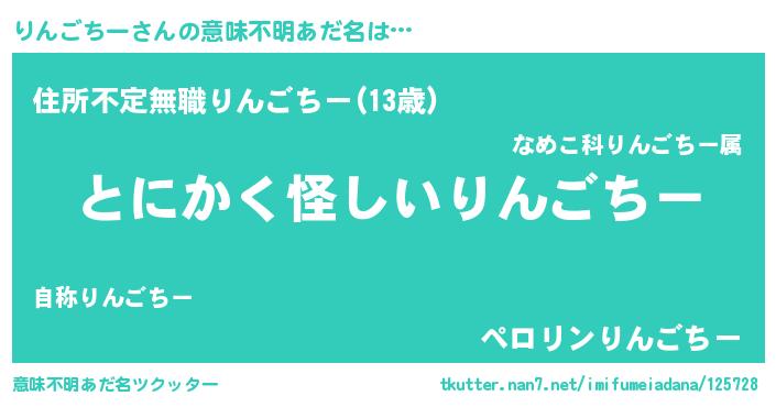 | 女子向けラノベタイトル風あだ名 | 『りんごちーの卵を拾いまして』 |