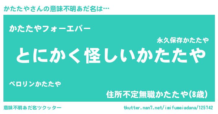 | 女子向けラノベタイトル風あだ名 | 『かたたやの卵を拾いまして』 |