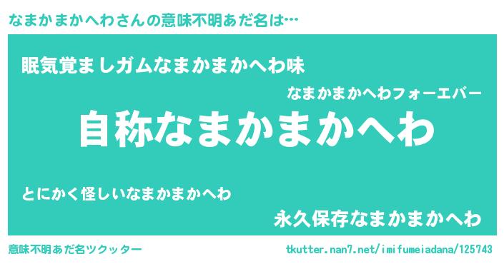 | 肩書あだ名 | 『なまかまかへわ閣下』 |