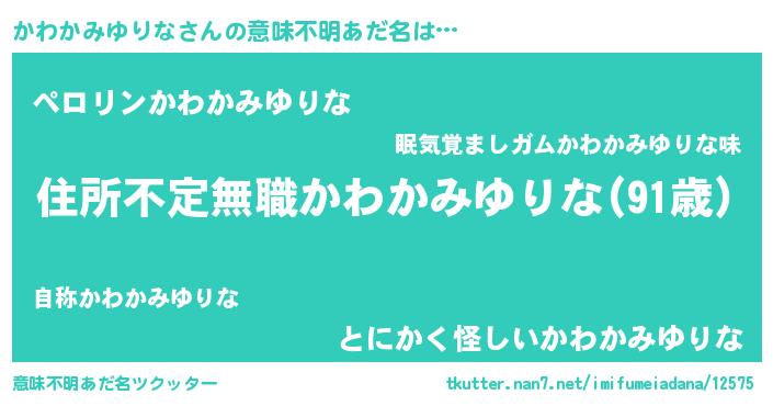 | 伝説のあだ名 | 『伝説のスナイパーかわかみゆりな』 |