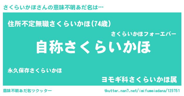 | 欧米人風あだ名 | 『ケンブリッジさくらいかほ』 |