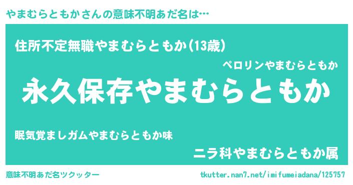 | 男性向けラノベタイトル風あだ名 | 『やまむらともかという概念が存在しない退屈な世界 』 |