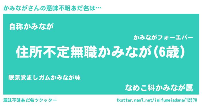 | 男性向けラノベタイトル風あだ名 | 『この素晴らしい世界にかみながを!』 |
